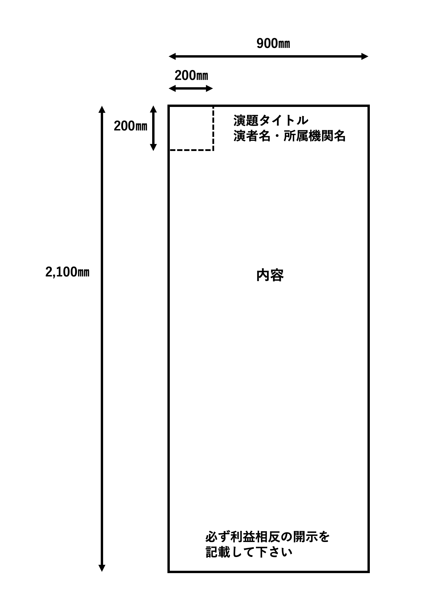 - 演題番号(縦20 cm × 横20 cm)は事務局にて用意し、パネル左上に掲示いたします。ポスターが重ならないようご留意ください。